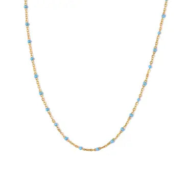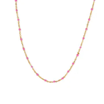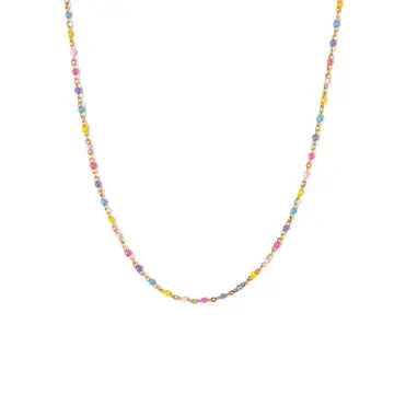 Add a pop of fun to your jewelry collection with our Enamel Bead Gold Necklace! Its vibrant design is perfect for standing out and brightening up any look. Pair it with your favorite playful outfits—it’s all about bold, happy vibes!